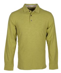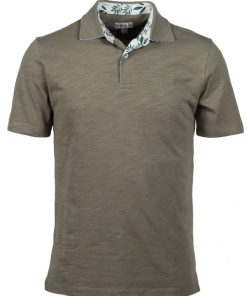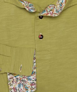 Coton Doux Men’s Khaki Green Regular Fit Long Sleeves Polo Shirt With Foliage Inner Lining Print
