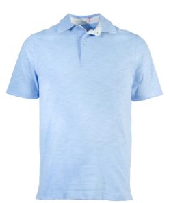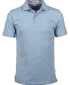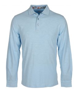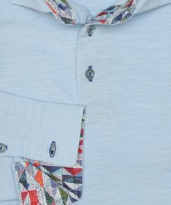 Coton Doux Men’s Light Blue Regular Fit Long Sleeves Polo Shirt With Triangle Inner Lining Print