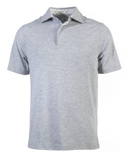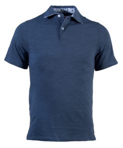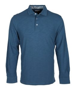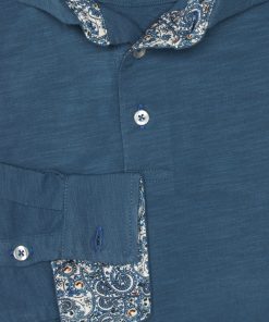 Coton Doux Men’s Blue Grey Regular Fit Long Sleeves Polo Shirt With Arabesque Inner Lining Print