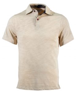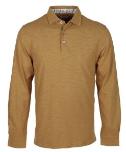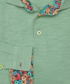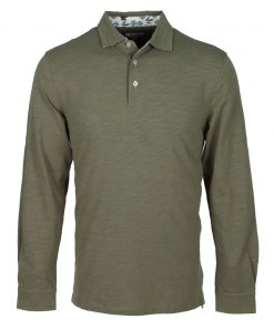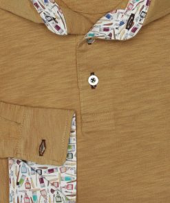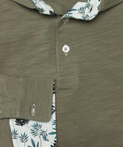 Coton Doux Men’s Khaki Green Regular Fit Long Sleeves Polo Shirt With Foliage Inner Lining Print