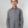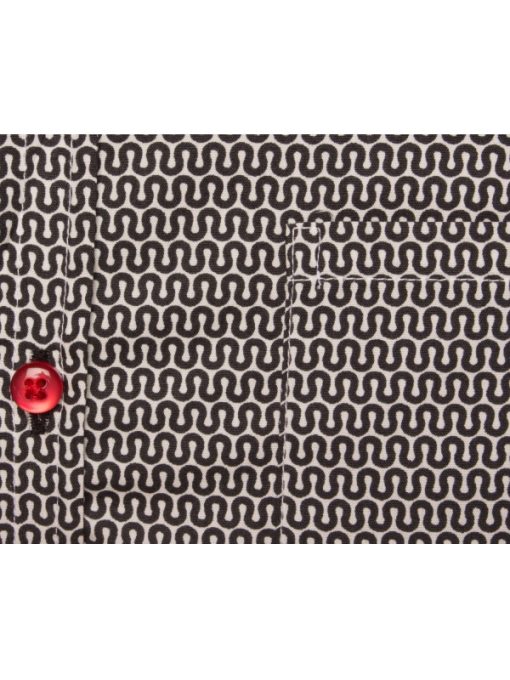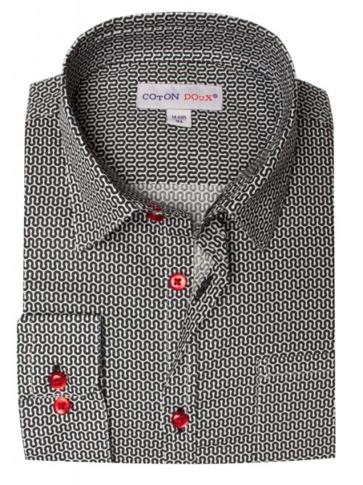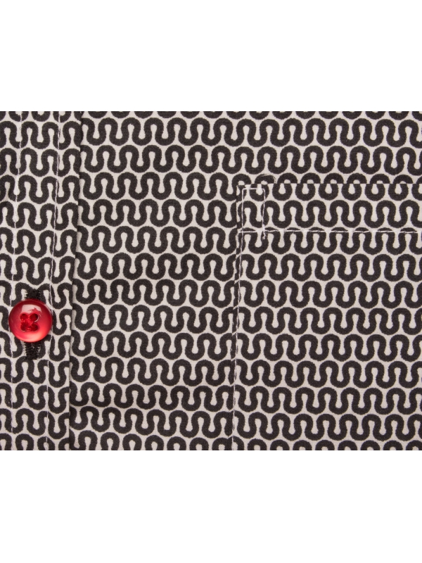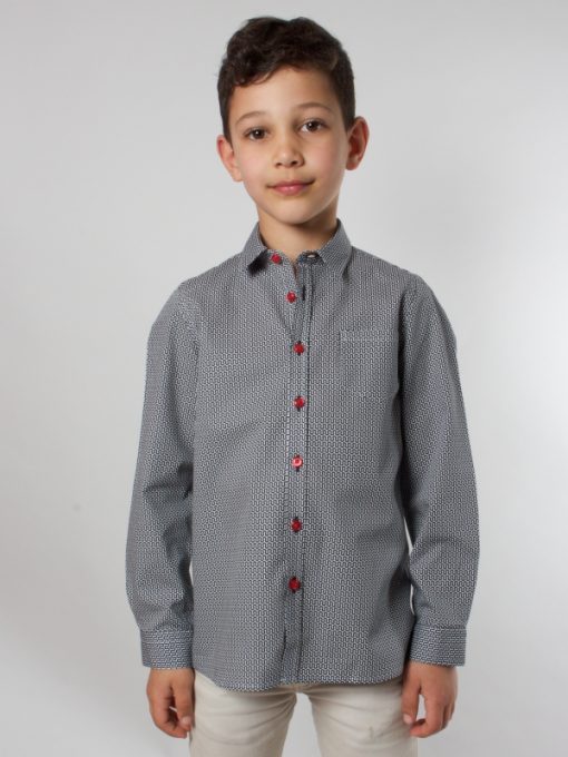 Give your child a taste for fashion with this shirt’s graphic geometric prints combining black and white. Ideal to wear with jeans, it is all the rage, with its close-fitting cut, its little collar and two-button cuffs.
