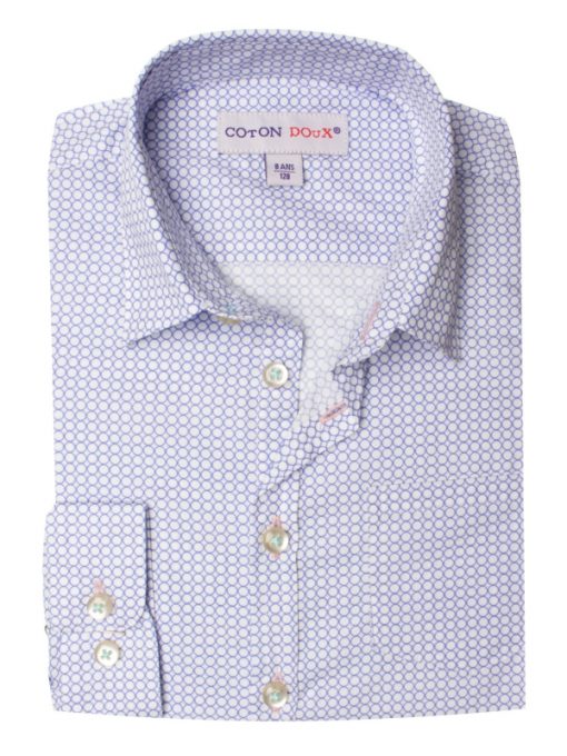 This very chic shirt will be the perfect ally to wear with a suit. With its very stylish lozenge print, this close-fitting shirt with a little collar and two-button cuffs will also go perfectly with a classic blazer and jeans, to give your boy a great look.
