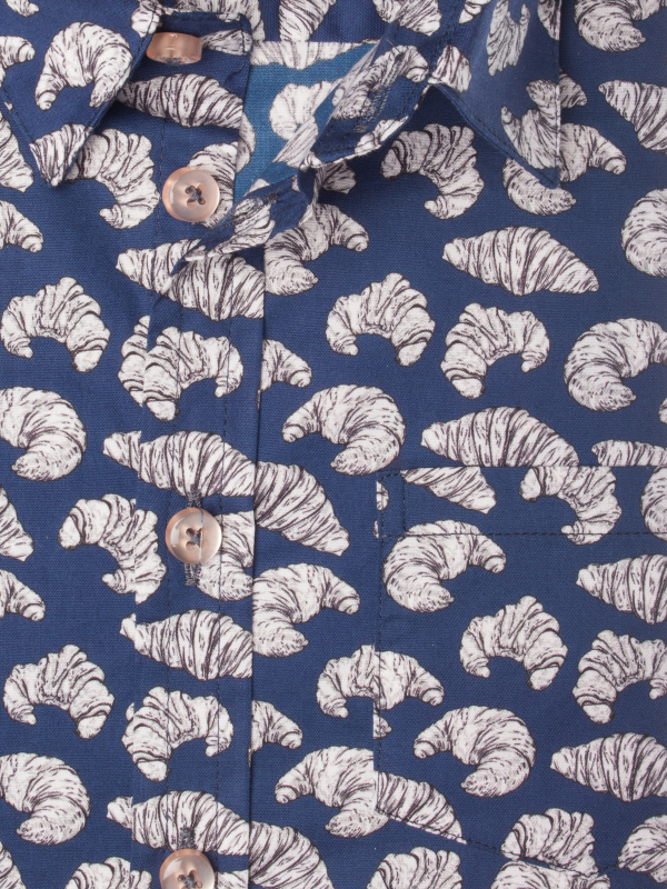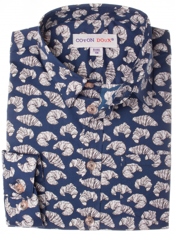 Make your child start the day with a good breakfast! This croissant printed shirt will finish to battle the hunger and will give him a crunchy-stylish look. Opt for a simple light-grey bottom, and its soft collar, double-button cuffs and loose fit will do the rest!