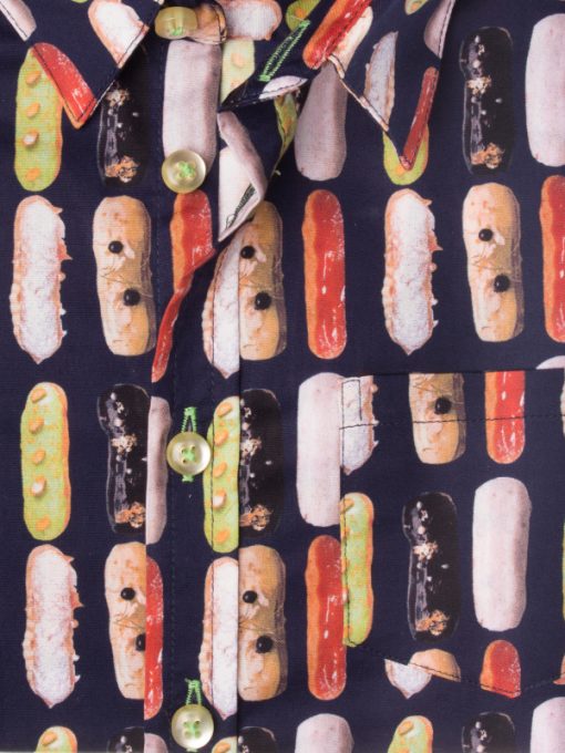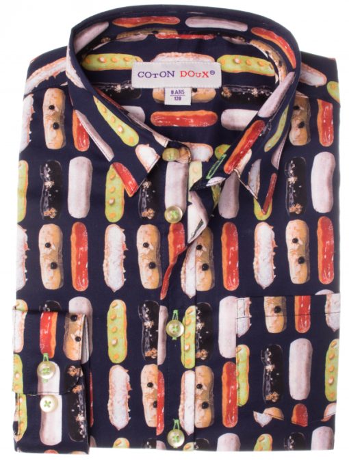 Do not fear indigestion! You can binge on this eclairs print without moderation. It will suffice to all the tastes and will easily be matched with a denim bottom and white sneakers. In addition, its loose fit, its double-button cuffs and the soft collar will provide polished and comfortable look.
