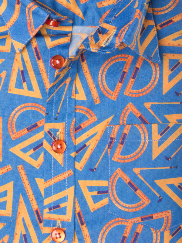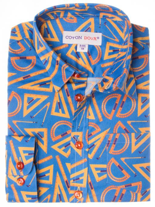 Give your child a less strict image of geometry with this shirt. This duo of blue and yellow will give him the look of an original pupil. Its soft collar, double button cuffs and loose fit will elegantly match a pair of jeans with white sneakers.