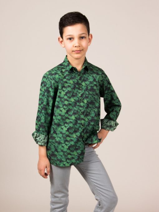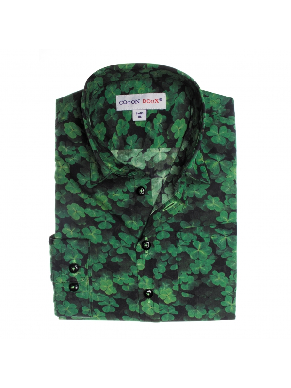 If your garden does not offer them a fairly large research ground, your children will certainly find a four leaf clover waiting across this green shirt. Its supple collar, loose cut and double button cuffs make it a very pleasurable to wear, what luck!