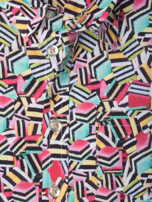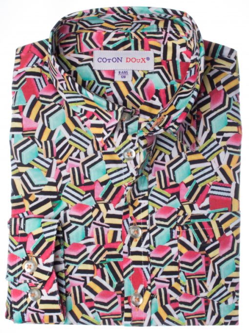 Treat your child with this liquorice printed shirt! Its coloured tints on the loose cut will soon catch the eye of his friends to make them a bit jealous. Its soft collar and double-button cuffs will make it a chic piece of clothing. Wear it with a black bottom to soften the look.