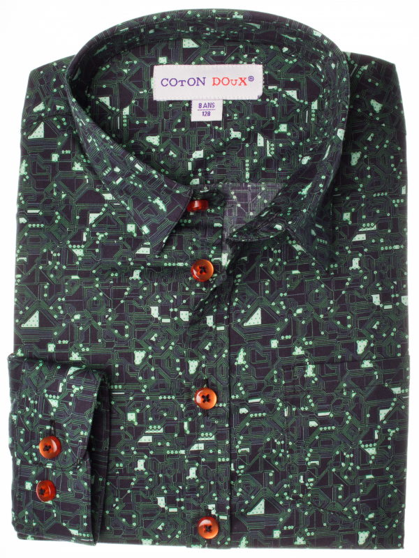 To ensure that your children are connected with the surrounding world, opt for this shirt with motherboard print. Its loose cut and soft collar will give them all the comfort. To make her or him feel like a real grown-up, match the shirt with a tweed jacket.
