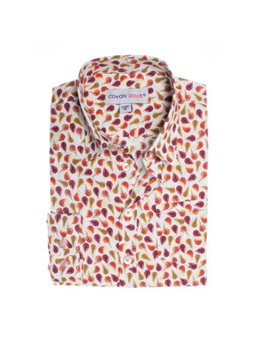 Nothing can go pear shaped with this pretty pear decorated shirt with a loose cut and supple collar. Like taken from a picnic basket, there is no doubt that your children will look good enough to eat once dressed in this design. Wear with beige or dark red Bermuda shorts for a very springtime look.