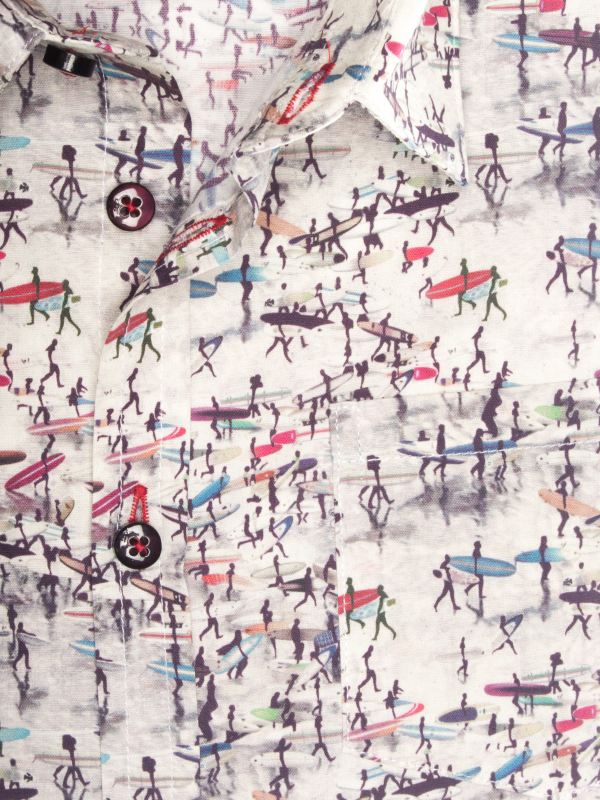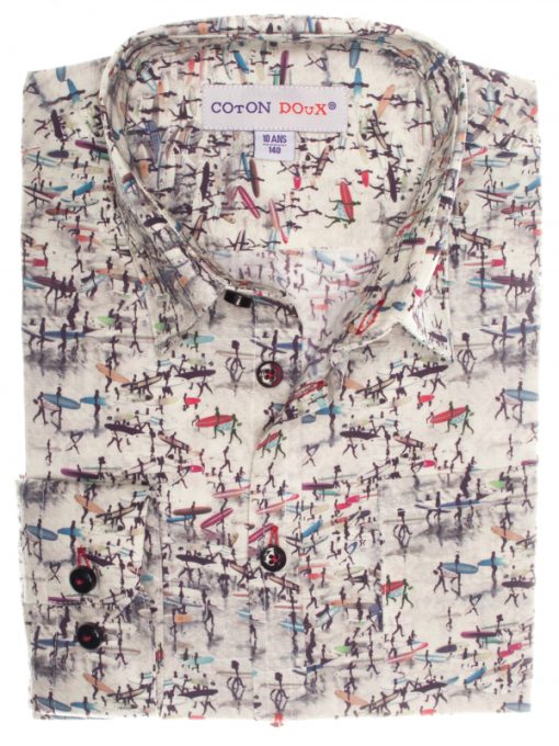 You are never too small to get on a surfboard! Our surfer print will slide into every kid’s summer suitcase. Its soft collar, loose fit and double-button cuffs add a touch of elegance that won’t be missed across the sand dunes…