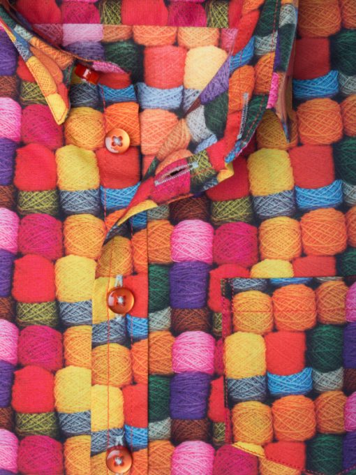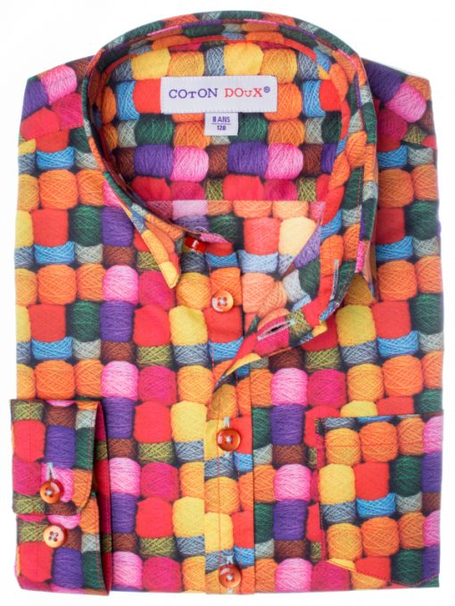 Knitting can seduce even the youngest thanks to spicy-vivid colors and this shirt with wool balls print will amuse any boy or girl. The soft collar and loose cut will bring comfort whereas double-button cuffs will be the synonym of elegance. To wear simply with a pair of light jeans.