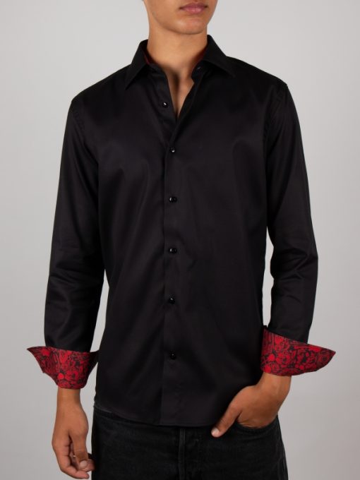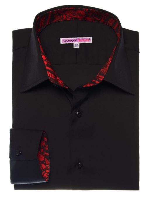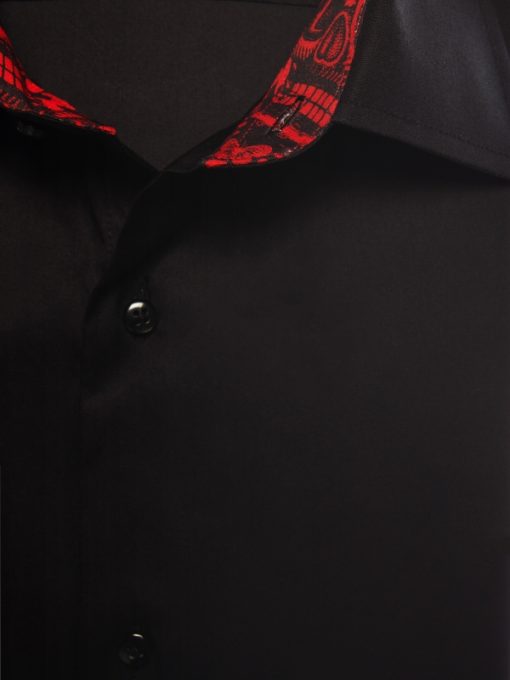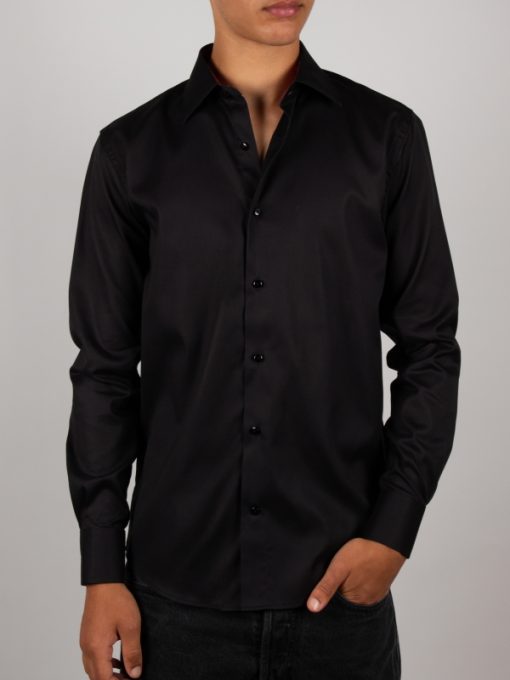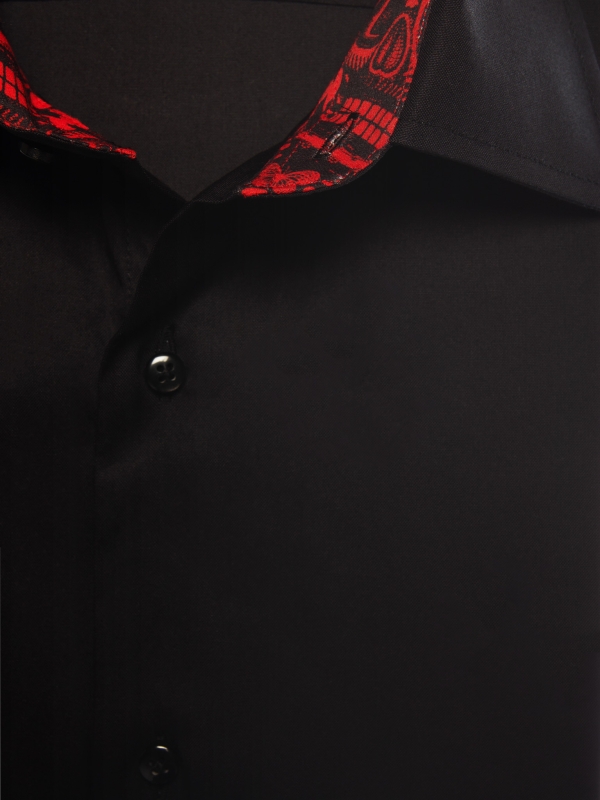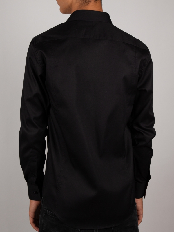 With a minimalist look, this black poplin shirt reveals a strong personality in every detail. Its tailored regular cut perfectly hugs the silhouette, while the inner contrast, inspired by tattoo art, adds an unexpected artistic touch. Simple cuffs emphasize a clean and timeless elegance.