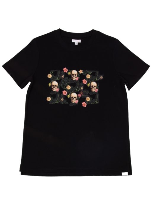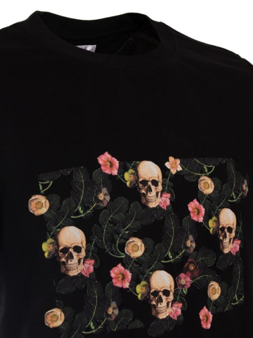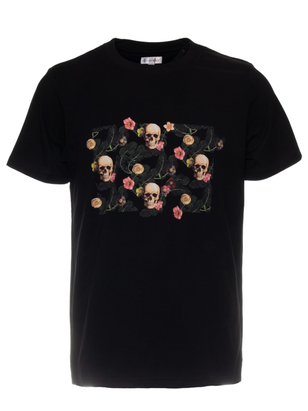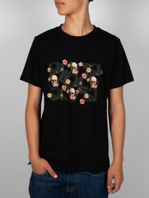 Coton Doux Men’s Black T-shirt With Vanities Flowers Print