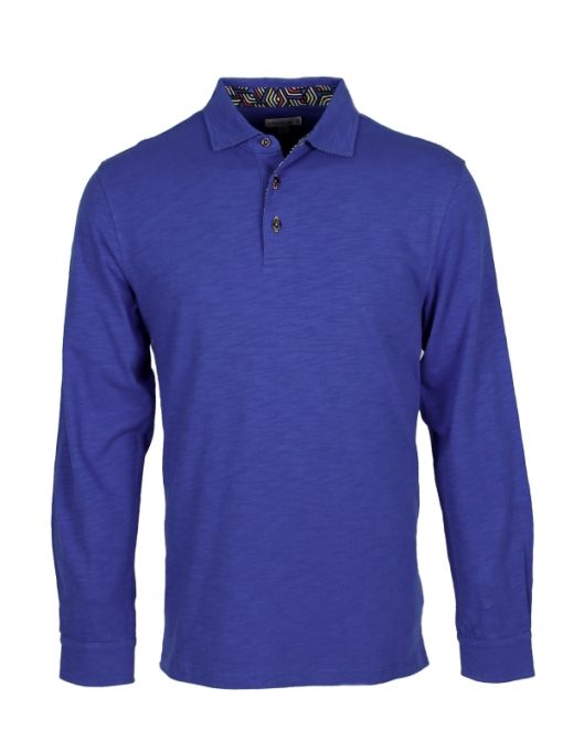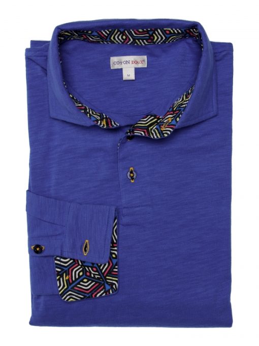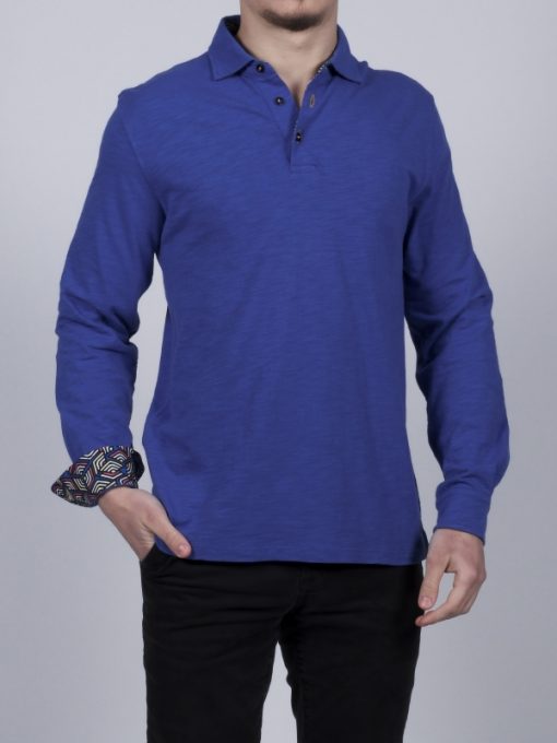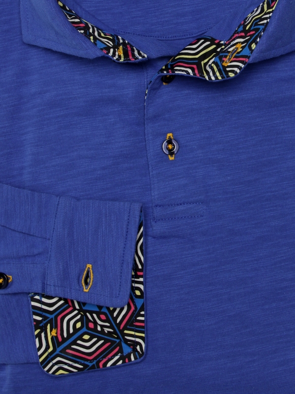 Is order your watchword? Then don’t hesitate and add this electric blue long sleeves polo shirt in pure cotton with cube inner lining print to your shopping cart. Its cotton piqué collar and two-button placket will give you the opportunity to be unusual while staying in order. Its fitted cut and its double button cuffs will make it an essential accessory that will suit you perfectly for a nice summer season! Mix it with a pair of black slim fit chino trousers for an even sharper look.