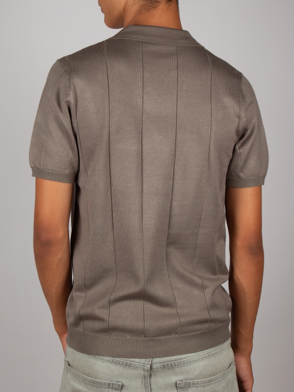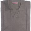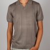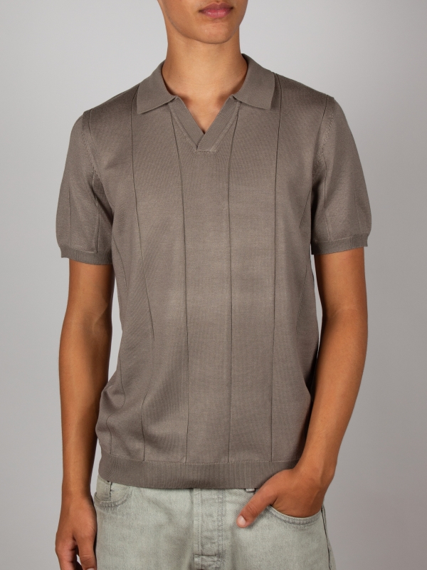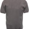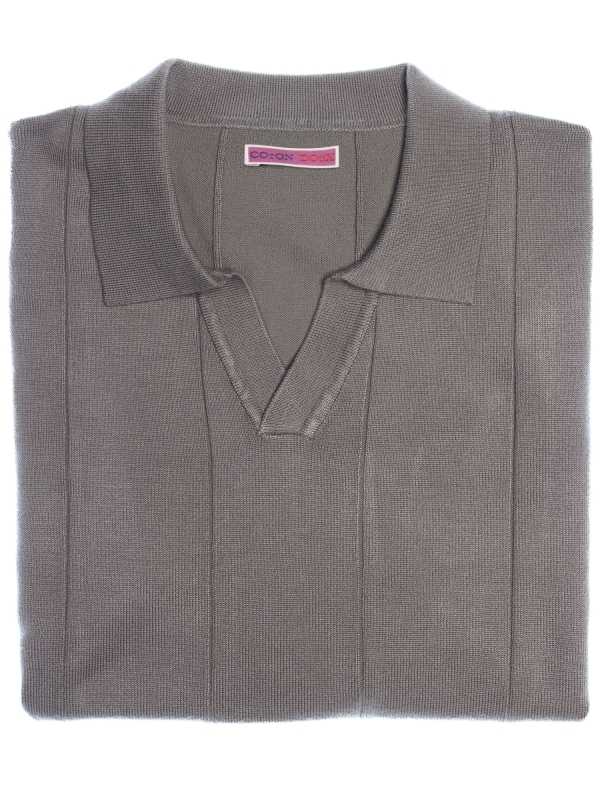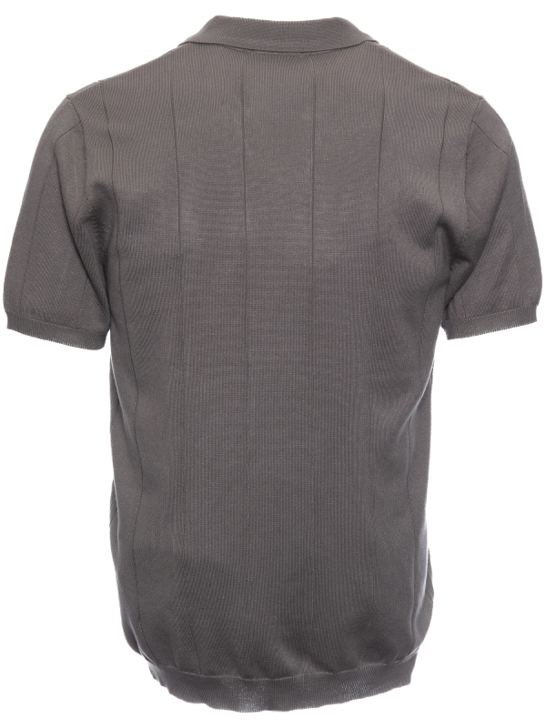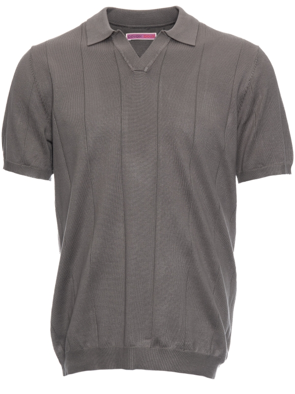 Coton Doux Men’s Grey Open-collar Polo With Textured Stripes