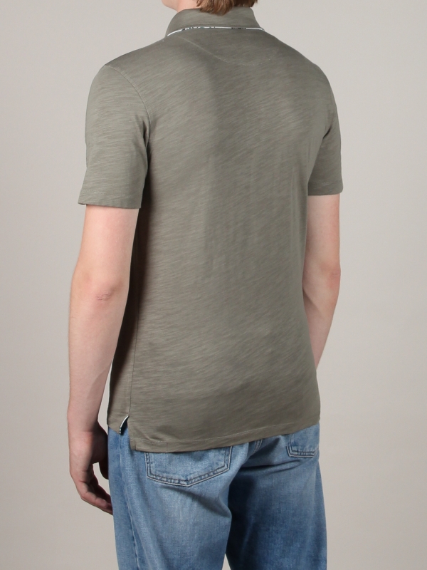 You like prints but prefer to discreetly slip them into your outfits? This khaki mottled polo is made for you with its foliage opposition hidden inside, after the two-button placket. The mercerised cotton jersey, cotton piqué collar and regular fit will make you jealous. Khaki green works perfectly with grey, so why not give it a try with grey checked trousers and a matching cardigan?