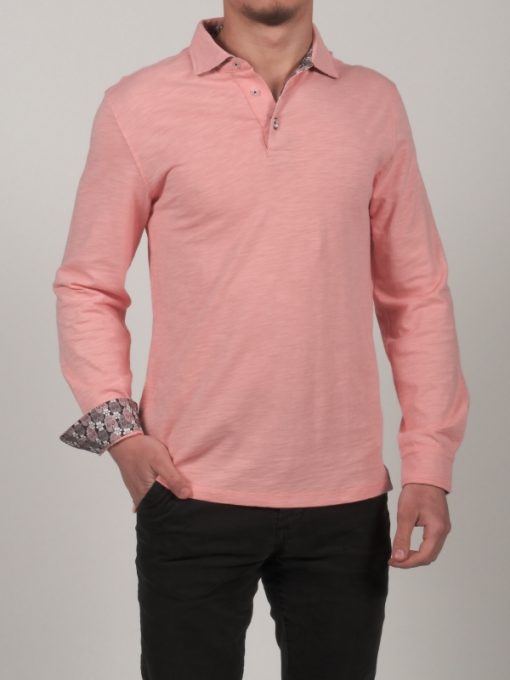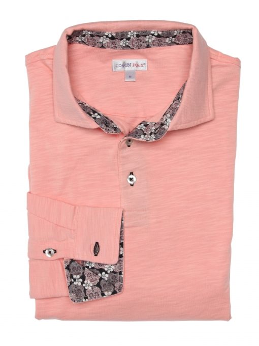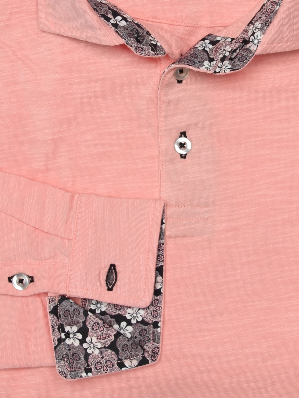 Have you been a fan of sweets since you were a child? The candy pink colour of this long sleeve polo shirt with double button cuffs will speak to you. Those with a keen eye will spot the skull inner lining print of in your cotton piqué collar. The more culturally savvy will even see what they match. The chic look of the two-button placket won’t escape their notice either. Straight jeans will fluidify the fit of the pure cotton slim fit!