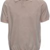 This beige knit polo stands out with its soft, natural tone. Designed with a classic collar, two-button placket, regular fit, and short sleeves, it embodies a clean and refined brightness.
