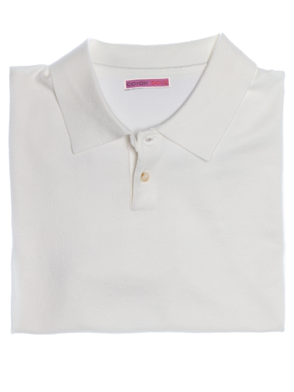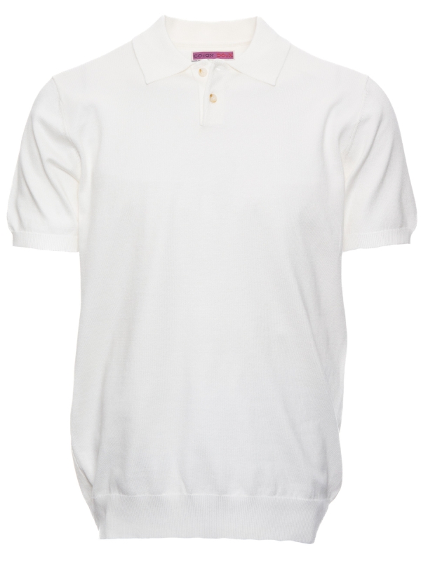 Coton Doux Men’s Plain White Polo Shirt With Two Buttons