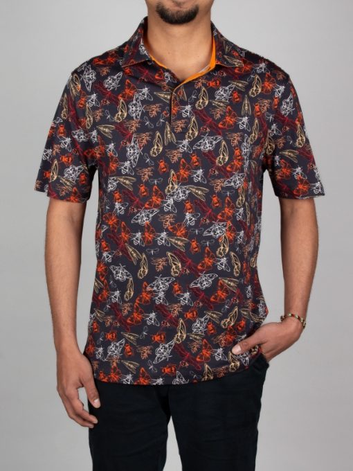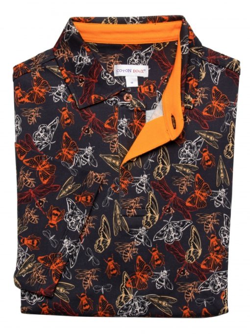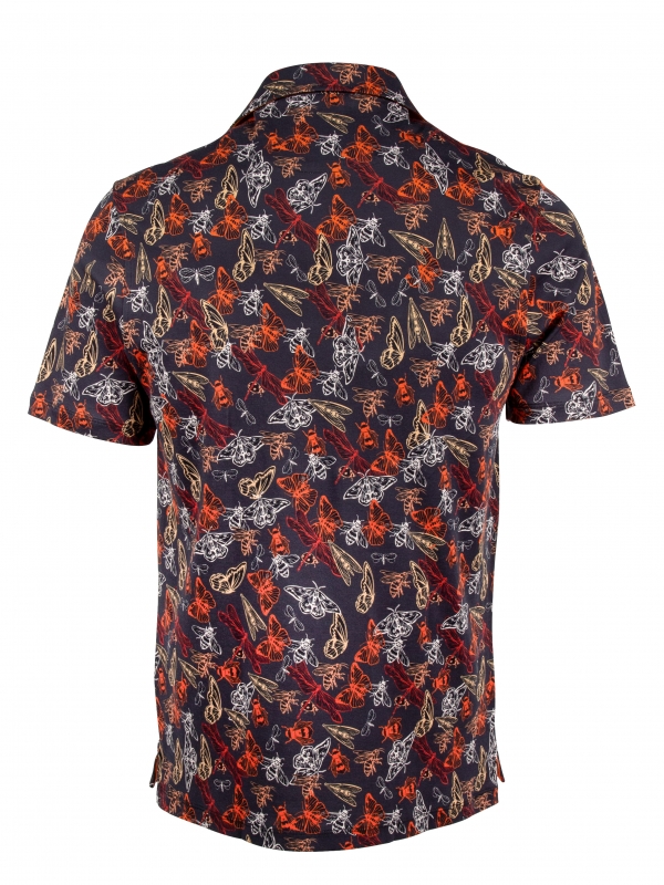 This polo shirt, with its butterfly print and other features, is a cocoon of softness. Slip it on and let yourself be enveloped by its unrivalled comfort, thanks to its regular fit and mercerised cotton jersey fabric. It’s a perfect match for beige chinos or warm-coloured trousers, with its two-button placket and orange cotton piqué collar. You’ve got everything you need to emerge from your chrysalis.