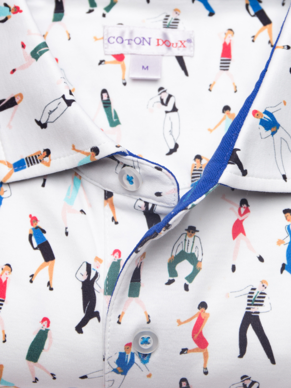 Do you have a dancer’s soul? Why not choose this cotton jersey polo shirt to liven the dance floors up? With its two-button placket, you’ll have a choice between a dressed or casual style, what better way to dance? Wear it with navy blue chino pants to go nicely with the plain cotton collar.