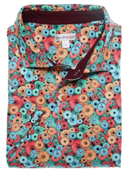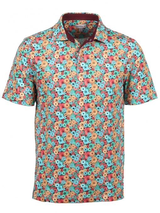 Go out for a spin with this regular-fit polo with a cog print! You’ll definitely have smooth style with its cotton pique collar, mercerised cotton jersey and two-button placket. Wear over black jeans or shorts to highlight the intensity of the colors.