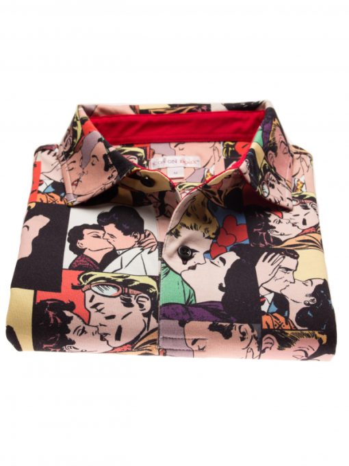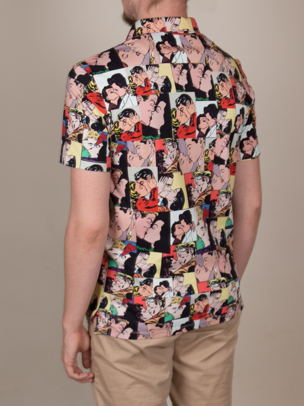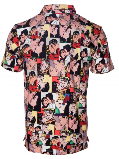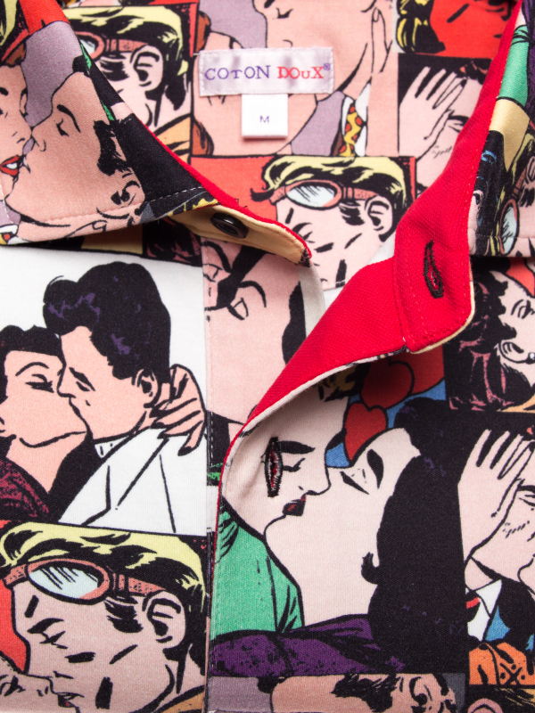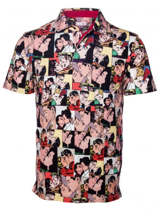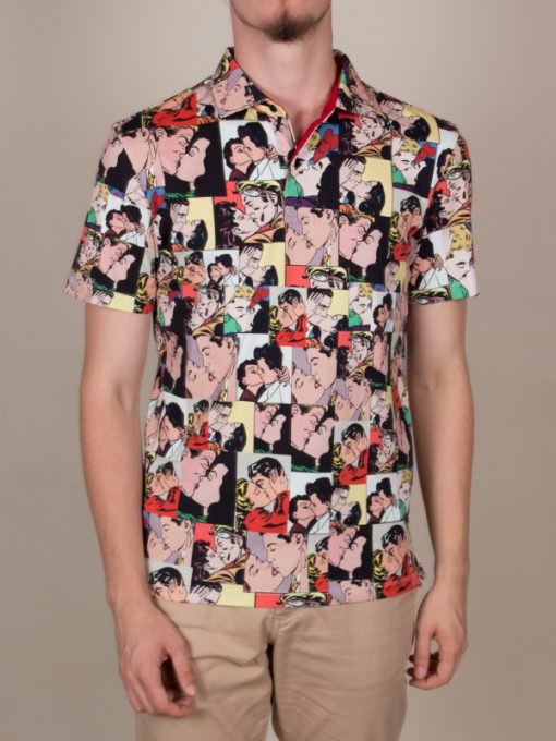 As there is no softer than a kiss, let yourself be seduced by this regular fit polo with kissing prints. Worn with beige shorts or raw jeans, this mercerized cotton jersey polo shirt is perfect for summer. Thanks to its two-button placket, it is up to you to wear it open or closed for a casual chic look and show off its piqué collar.