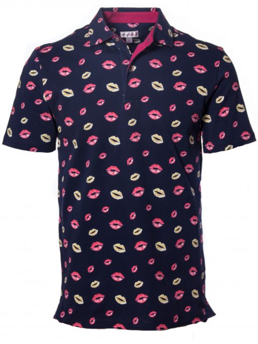 A charmer to the core? Test your seductive power with this regular fit polo with lip print. With beige chino pants and a pair of white sneakers, it will become your greatest asset for a casual and elegant look, thanks to its two-button placket, slim cut and piqué collar. Its composition in mercerized cotton jersey will seduce you.