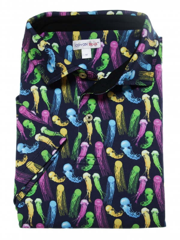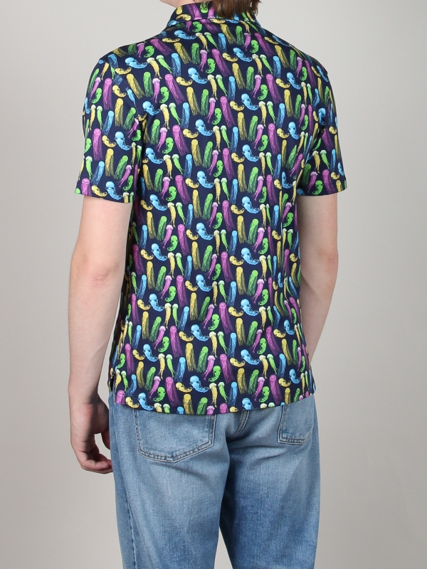 Did you know that there is a potentially immortal species of jellyfish? We don’t guarantee that this multicolored print will give you the same result, but one thing is for sure you’ll be stylish at any age. In the meantime, you’ll appreciate its comfort thanks to its mercerized cotton jersey composition and its cotton piqué collar. The same goes for the elegance of its two-button placket and its slim fit. A little tip to wear these colors would be to match it with black pants and boots to harmonize the outfit.