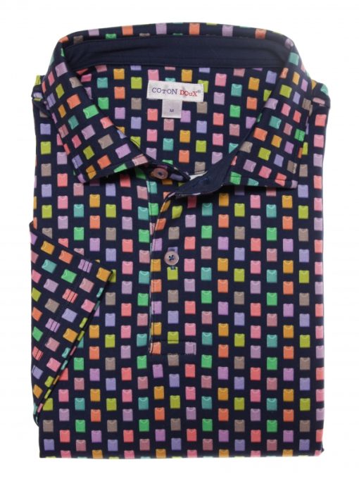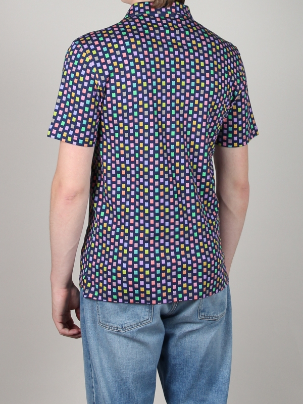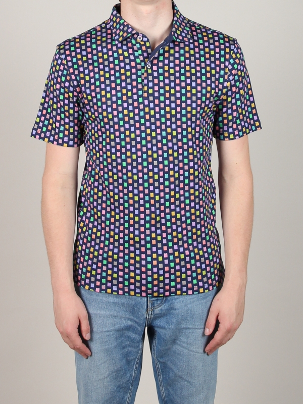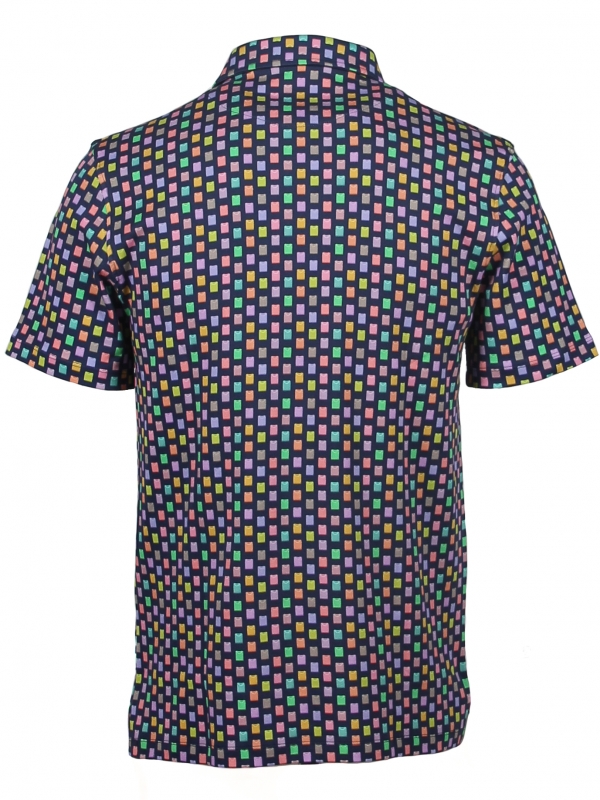 Have you ever had a dream within a dream? Try a polo shirt within a polo shirt with this multi-colored polo print. The originality doesn’t overshadow the lightness of its mercerised cotton jersey composition or the comfort provided by its two-button placket and cotton piqué collar. Finally, theregular fitted cut will complete the picture. A little outfit tip? Pair it with shorts or a chino in a color already featured on this model. For shoes, a simple pair of sneakers for a sportswear look.