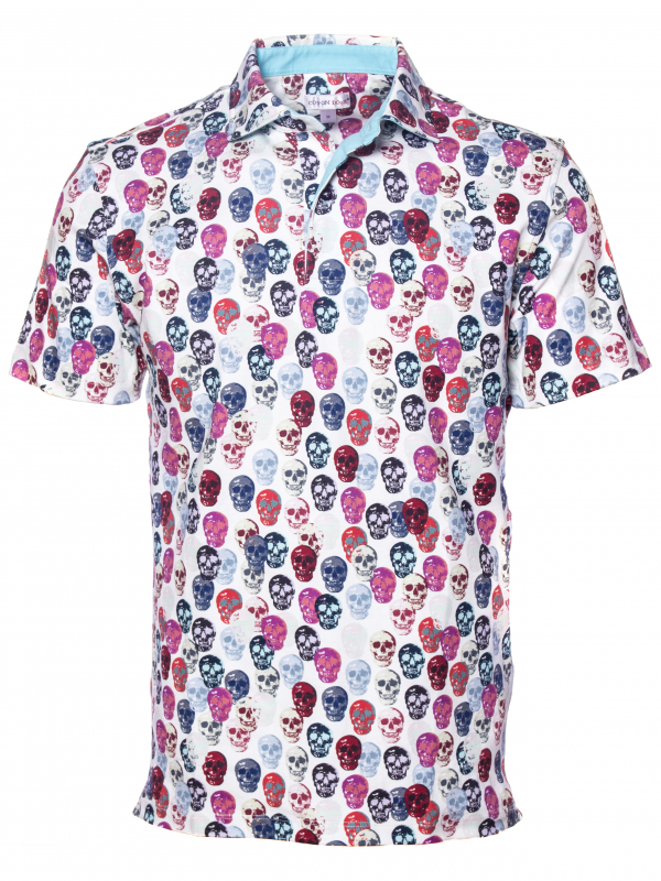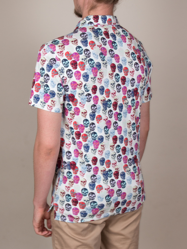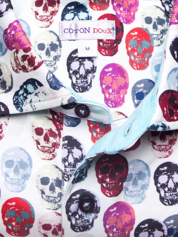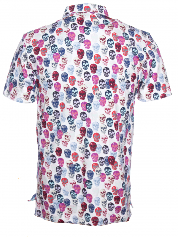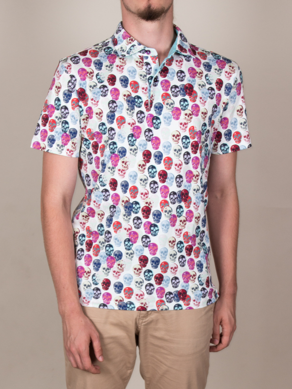 This short sleeved polo shirt with a multicolored pop skulls prints on a white background is the perfect combination to make many people jealous. Its cotton jersey composition and two-button placket allow you to choose a casual or dressed look. You will be able to vary the styles according to the occasions.