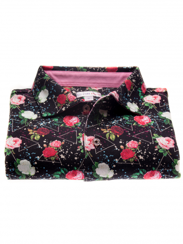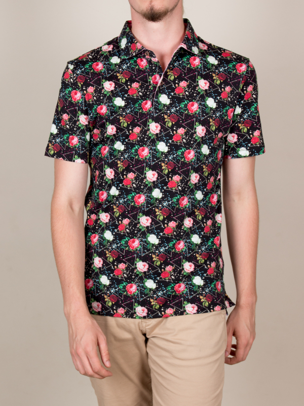 Romantic all the way to your wardrobe? This regular fit polo with rose print is perfect for you. It will guarantee you maximum comfort thanks to its fitted cut, its mercerized cotton jersey composition and two-button placket. With black jeans, its pink collar will be the perfect contrast to seduce you.