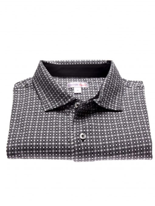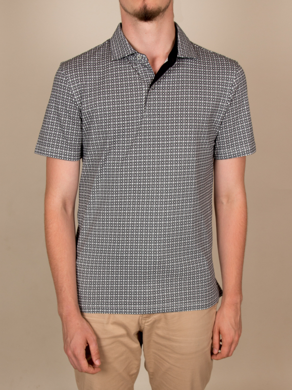 Get out of your comfort zone and add a touch of modernity to your wardrobe with this fitted polo shirt with geometric prints. This sober cotton jersey polo shirt is suitable for the most classic styles. Its two-button placket allows you to open it for a more casual look. Perfect for an informal evening with friends…