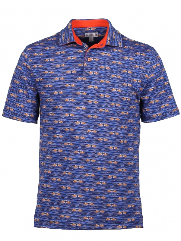 Is the swan your favorite animal? If yes, must not miss the print on this Mercerised cotton jersey polo. Take time to observe the finishing touches: cotton piqué collar, two-button placket and a regular fit… Many attributes that will give you grace and class. Wear over a navy chino and under a vest of the same tone if the weather is cool, to highlight those “coiled” birds.