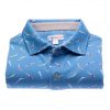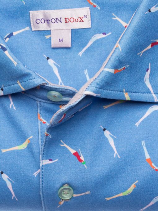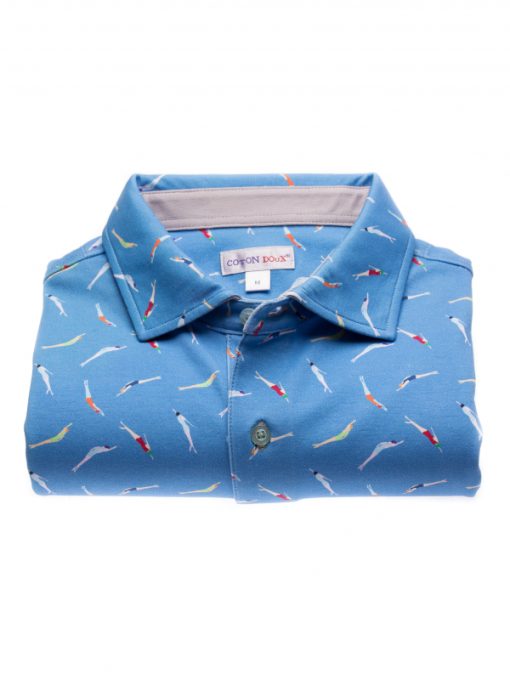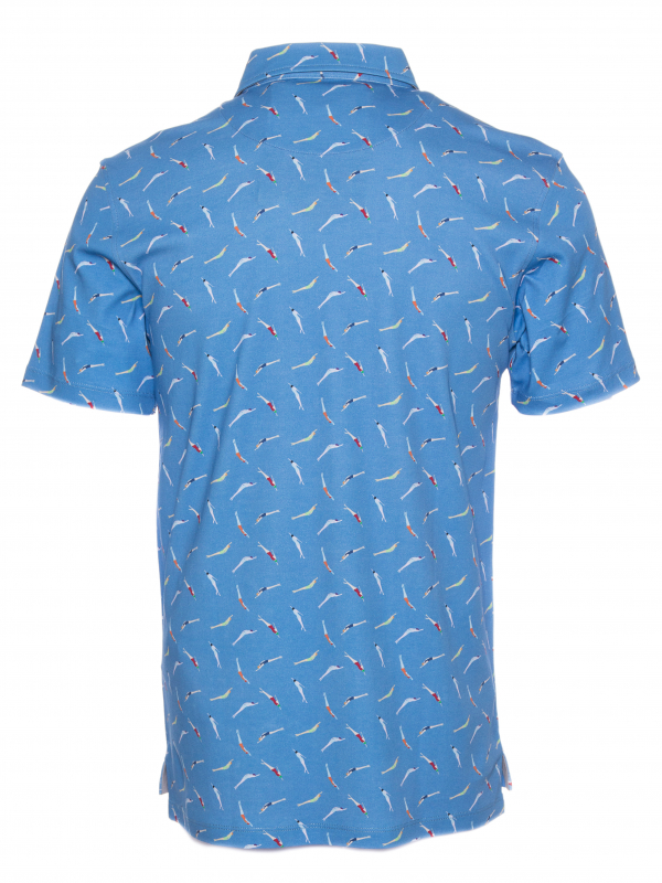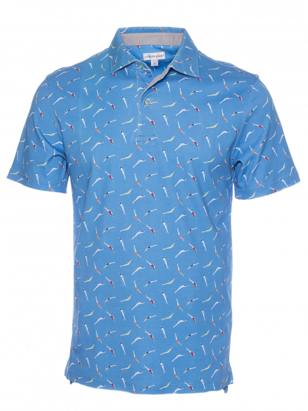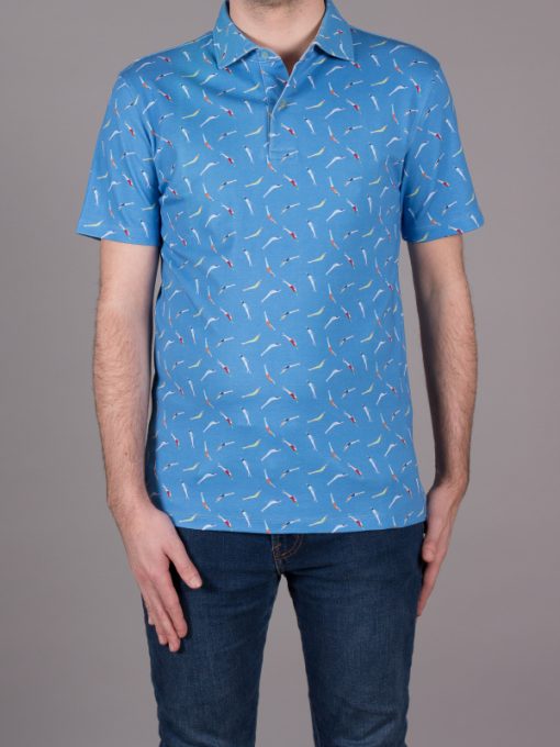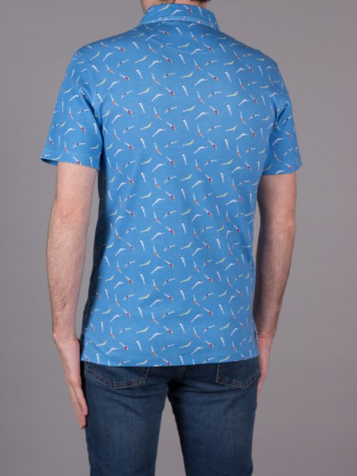 If diving is one of your favorite water sports we think you will really enjoy this polo. It is a very original pattern and a good proposition for those who will enjoy the summer days in the beach and love discover the beauty of the sea. The soft touch of the jersey of cotton, the double button and the regular fit add with the light blue color is a totally charming combo. To push up the outfit a good pair of shorts or jeans pants and white footwear can be a great match.