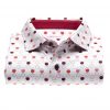 Epicurean at heart, enjoy this revamped wine glass print! With its geometric effect, it will be discretely worn over a burgundy chino, as a reference. Its cotton jersey composition and regular cut will also add to its charm, a pleasure to wear. Mark the contrast by highlighting its double button and its orange cotton piqué collar. This is a vintage outfit!