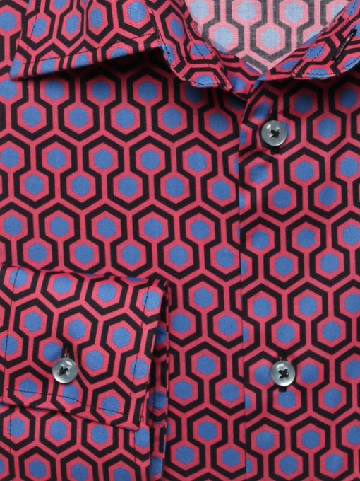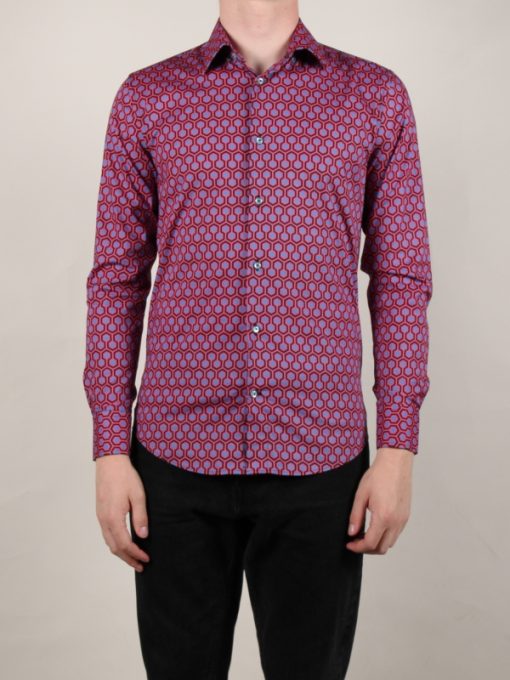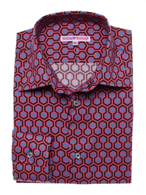 If you like the discretion of geometric shapes and the originality of prints, let yourself be tempted by this fuchsia and blue shirt. Featuring a Milanese collar and simple cuffs and designed with a regular cut, it’s sure to give you all the elegance and uniqueness you need! Try wearing it with raw denim or navy cargo pants for a better effect and go for the style.