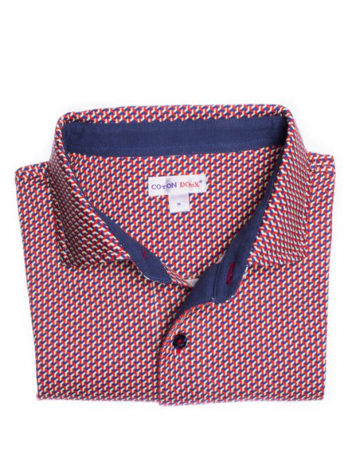 Here is a trio of colors that won’t be unnoticed on this regular fit polo shirt. The geometric cube print will win the votes of classic pattern lovers while keeping the originality. Your style will be casual enough to wear it daily thanks to its mercerized cotton jersey and short sleeves. The cotton quilted collar and the two-button placket won’t be unnoticed either. Keep up your timeless momentum by wearing it with simple navy trousers and white sneakers.