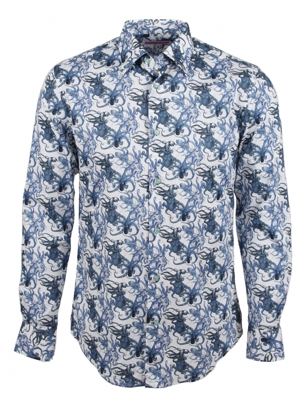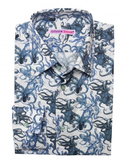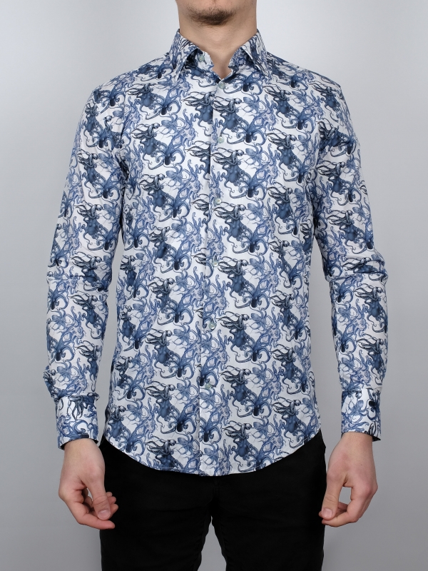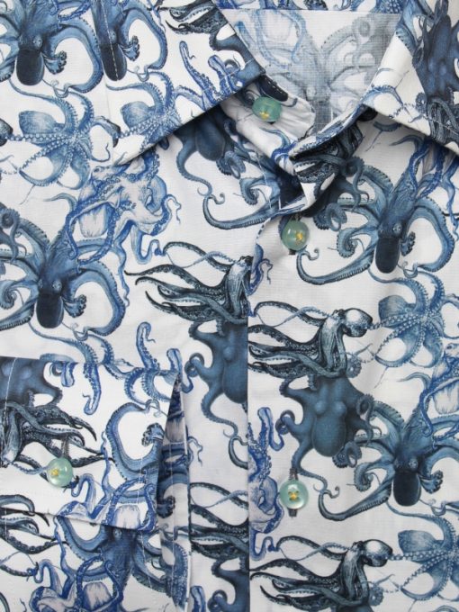 For all the fans of the sea, no need to take to the sea to meet them. With this octopus print shirt let your passion for these ocean creatures speak for itself! Its single cuffs, Milanese collar and regular fit will pair nobly with jeans as well as a pair of white sneakers to sport a nautical yet city-minded look.
