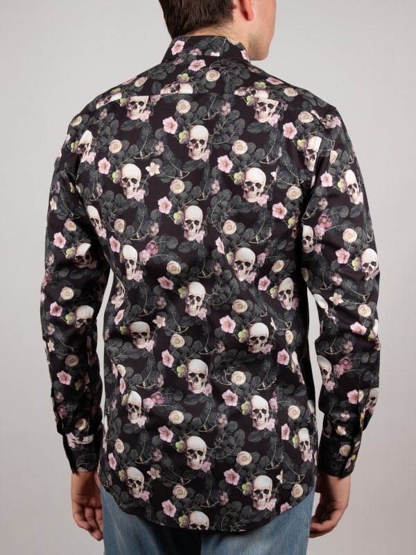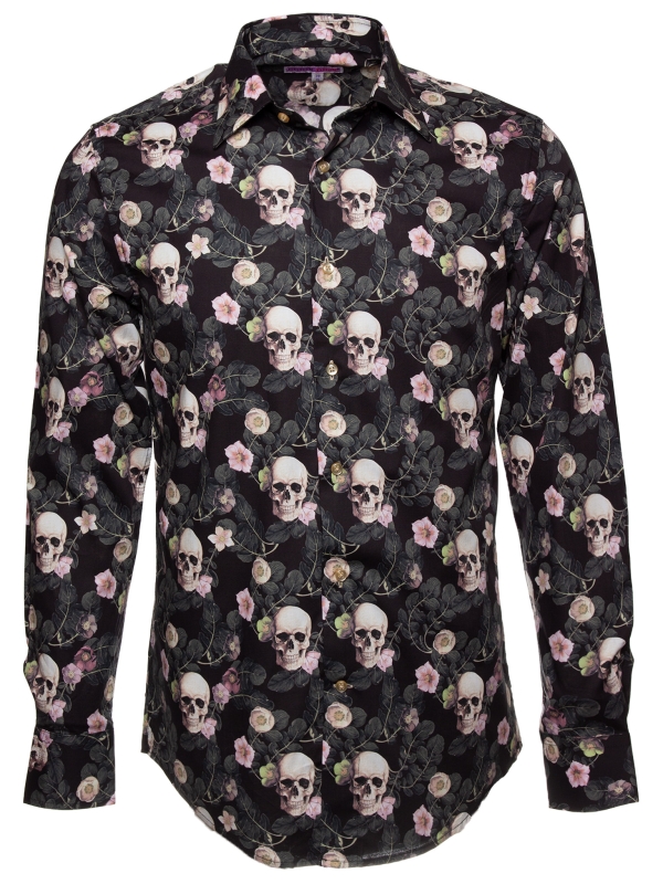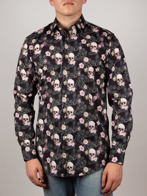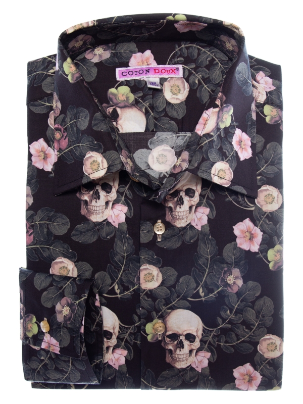 Coton Doux Men’s Regular Fit Shirt With Skull And Flower Print
