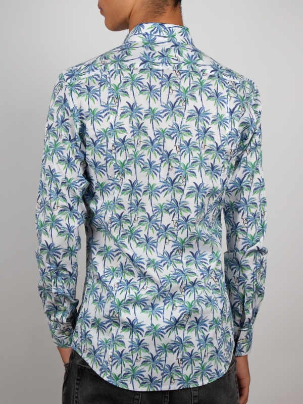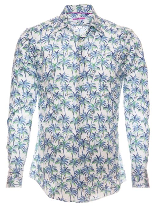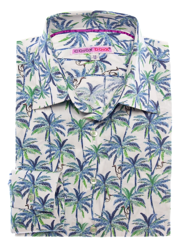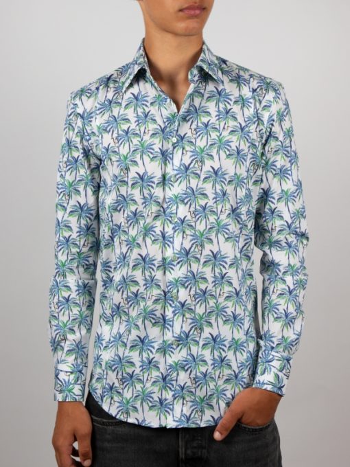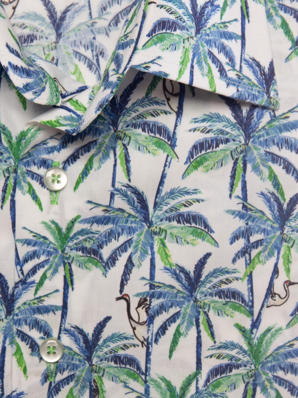 Let yourself be seduced by the tropical vibe of this slim fitted shirt featuring a two-tone palm tree print. The color palette strikes the perfect balance between simplicity and originality. Its cut flatters the silhouette with subtlety, while the Milanese collar and simple cuffs elevate the design’s elegance. Pair it with light-colored chinos for a sun-kissed, stylish look.