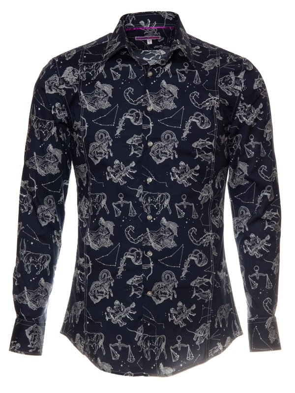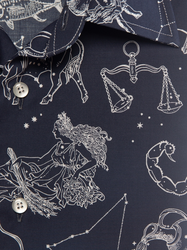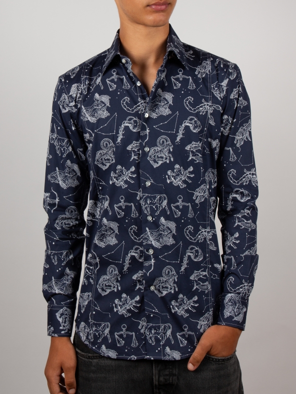 Showcase your personality with thisslimfitted shirt featuring a Zodiac sign print. Its original and harmonious design invites contemplation, while the Milanese collar and simple cuffs ensure a touch of elegance. The cut enhances the silhouette, making it perfect for both the office and your most inspired evenings.