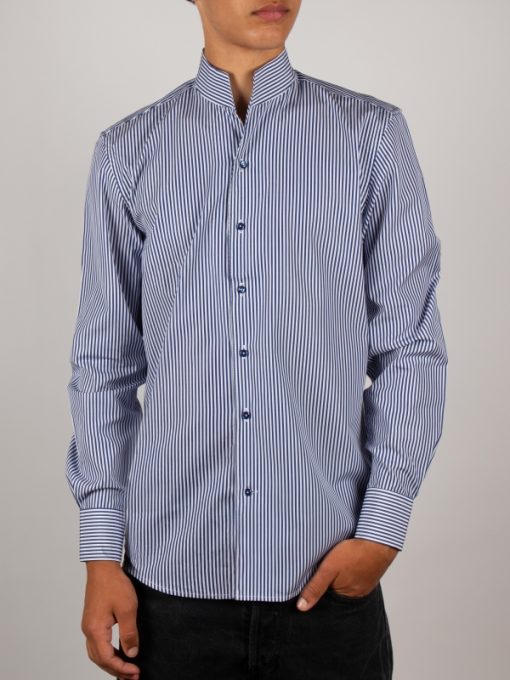 With its straight, tailored regular fit, this shirt combines elegance and simplicity. The stand-up collar and clean cuffs add a subtle, original touch. A classic reimagined for those who like to stand out without overdoing it.Perfect for a smart yet relaxed everyday look.