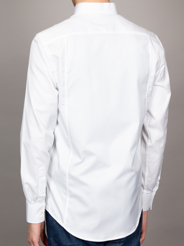 This white jacquard shirt with a stand-up collar brings a fresh twist to classic style. The textured pattern adds depth, while the regular fit ensures comfort all day. It’s a versatile piece that pairs well with both casual and formal looks. With its simple design and clean lines, this shirt will quickly become a staple. Perfect for those who appreciate a laid-back yet polished appearance.