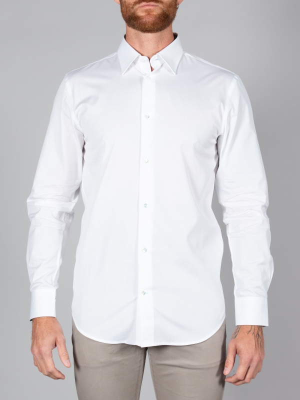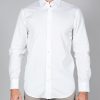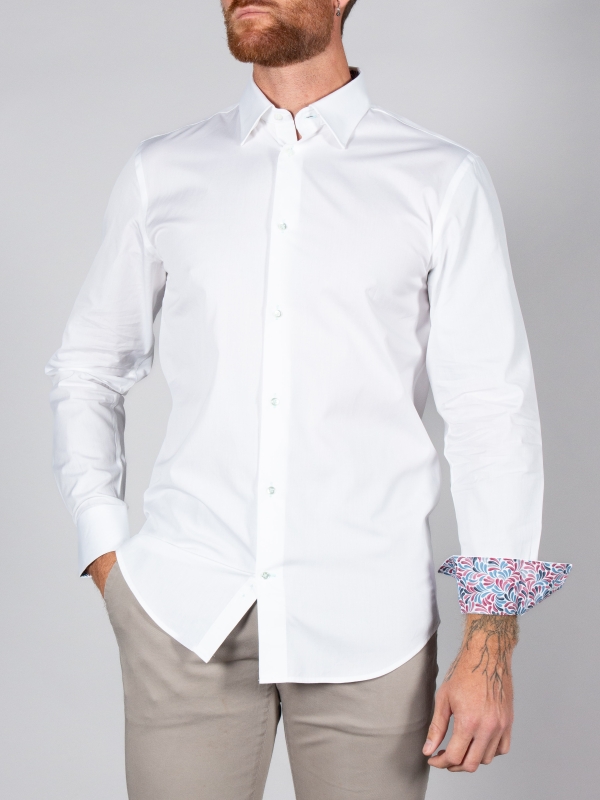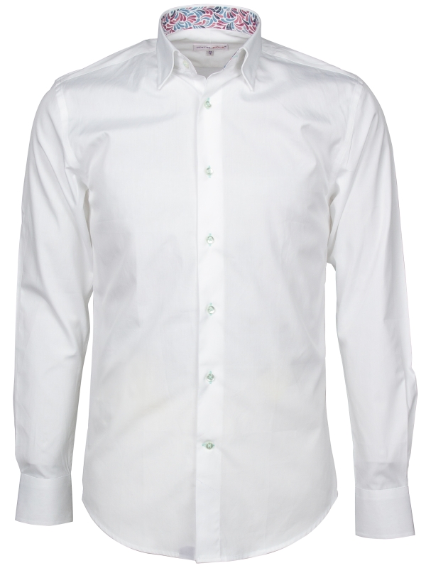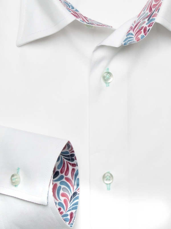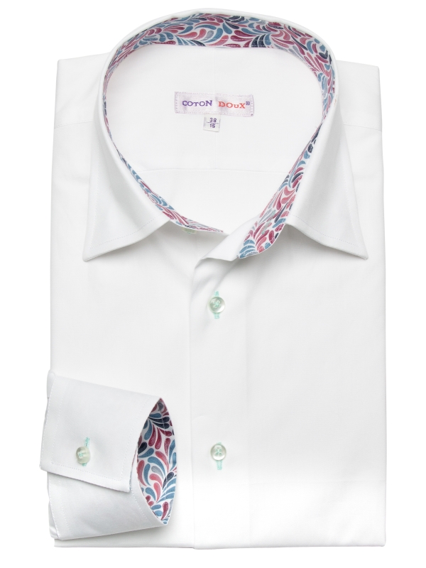 Coton Doux Men’s White Poplin Regular Shirt With Watercolor Paint Inner Lining Print