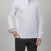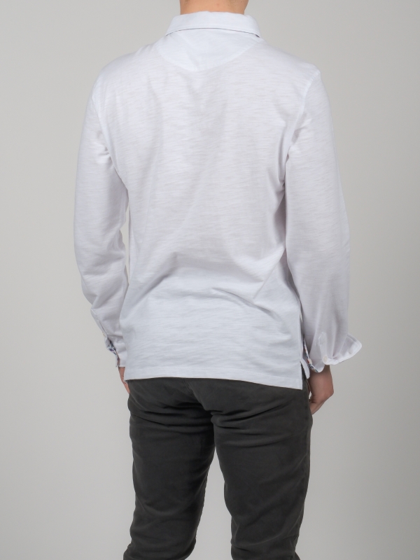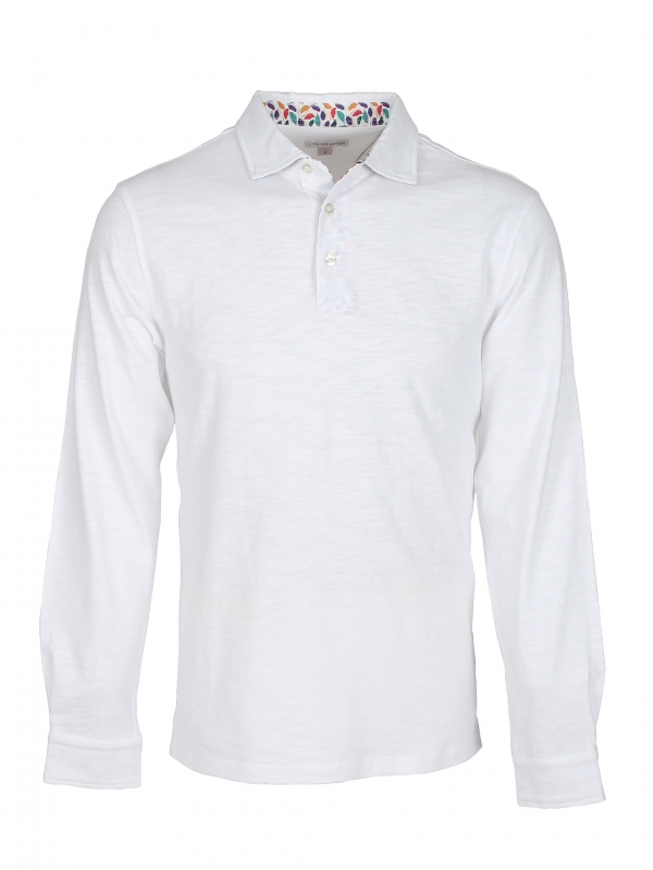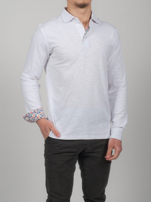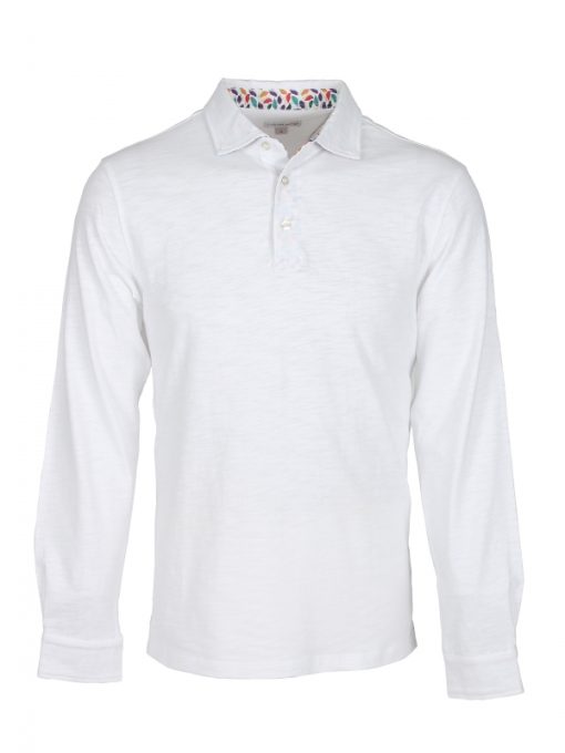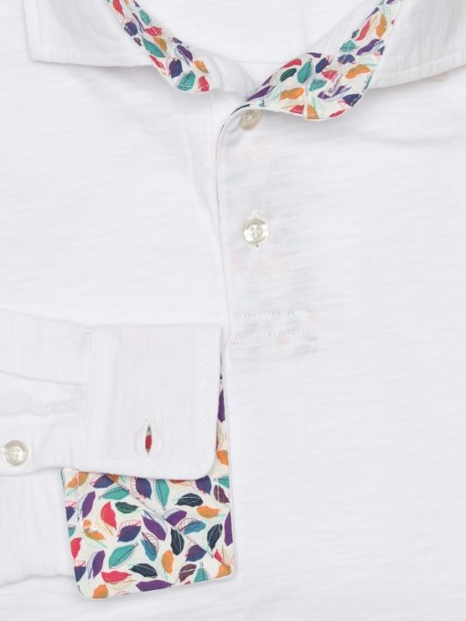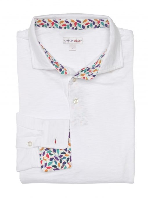 Coton Doux Men’s White Regular Fit Long Sleeves Polo Shirt With Tree Leaves Inner Lining Print