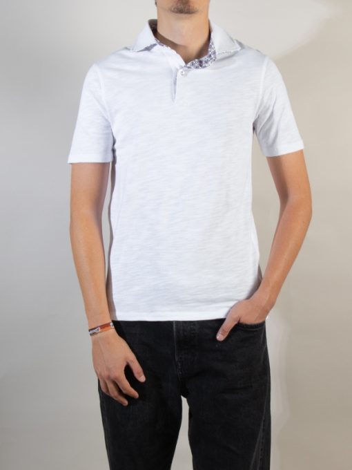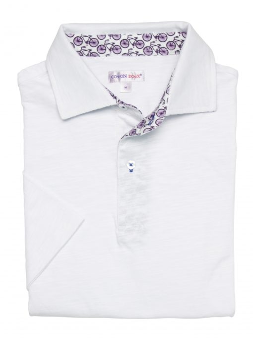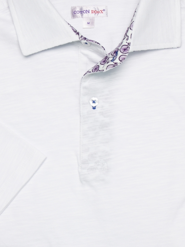 Coton Doux knows a thing or two about mixing desires… A white polo shirt for freshness, combined with bikes inner lining print for freedom – it’s possible! Grab hold of its regular fitand mercerized cotton jersey composition, before permission slips through your fingers. Still not sure? You may have missed the two-button placket. A pair of linen trousers and loafers should convince you to take the plunge.