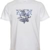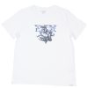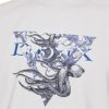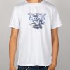 On a bright white background, this T-shirt features a stylized blue and white octopus framed by a striking triangular design. Made from mercerized cotton, it combines softness and durability. Its unisex straight cut, ribbed crew neck, and back neck yoke ensure perfect comfort. Side slits and double-needle stitching complete this modern and bold design.