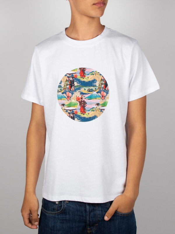 Coton Doux Men’s White T-shirt With Vintage Japenese Print
