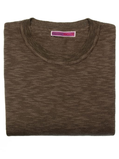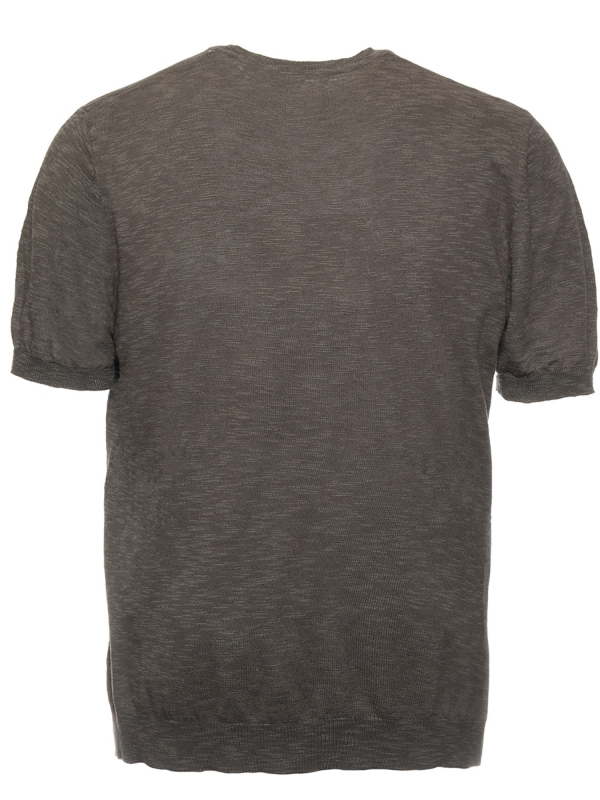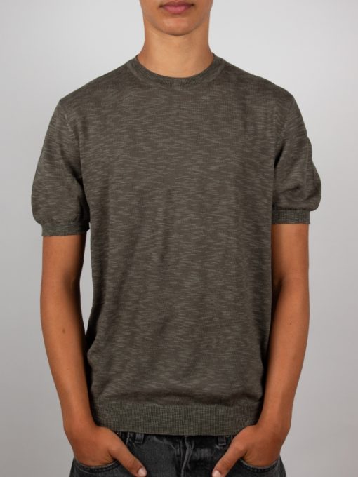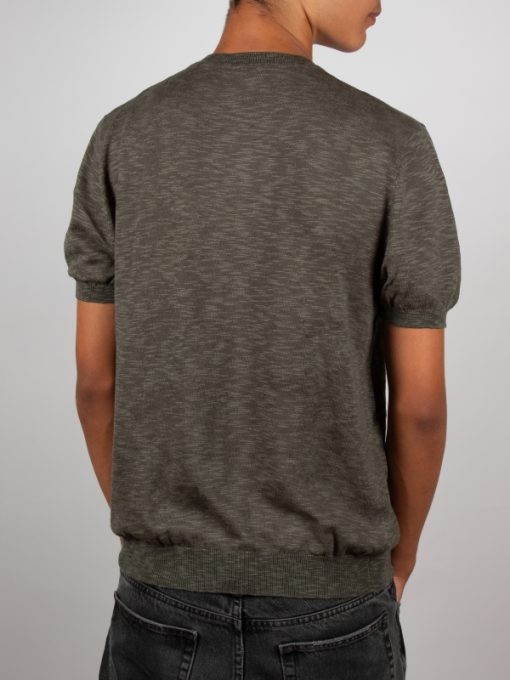 Beneath its natural khaki hue, this plain knit polo exudes subtle, contemporary elegance. Its classic crew neck, straight cut, and short sleeves make it an essential piece—both casual and refined. Easy to style, it pairs effortlessly with casual looks as well as smarter outfits.